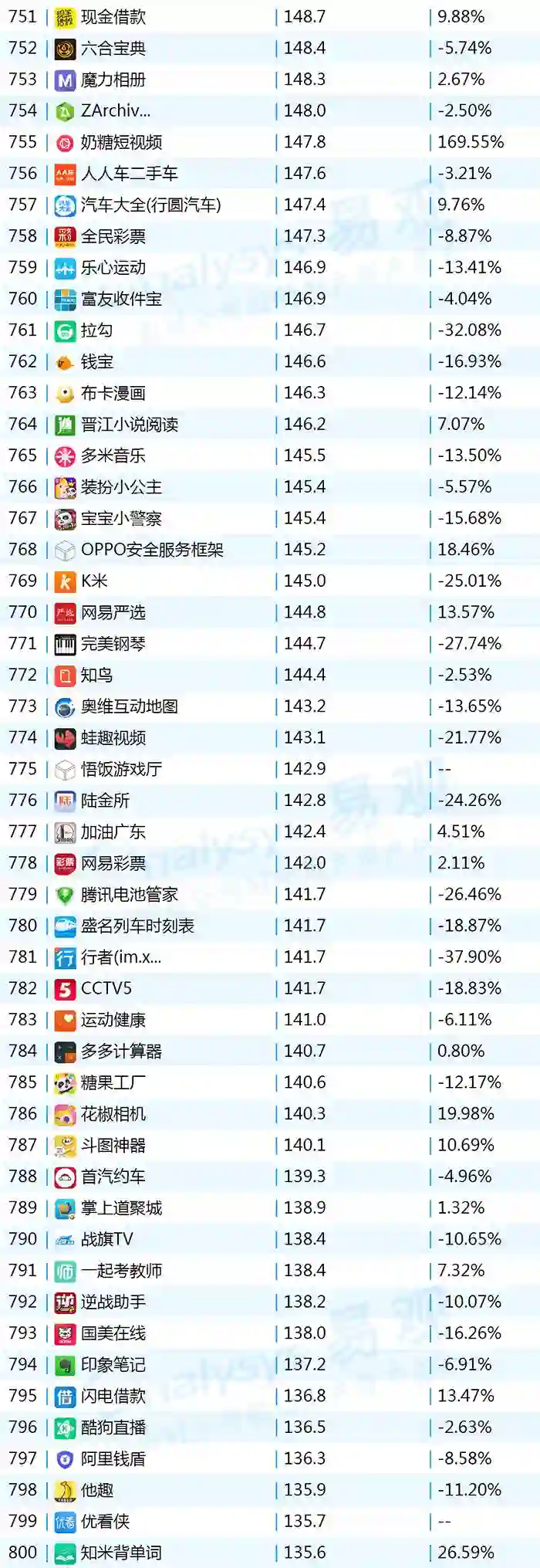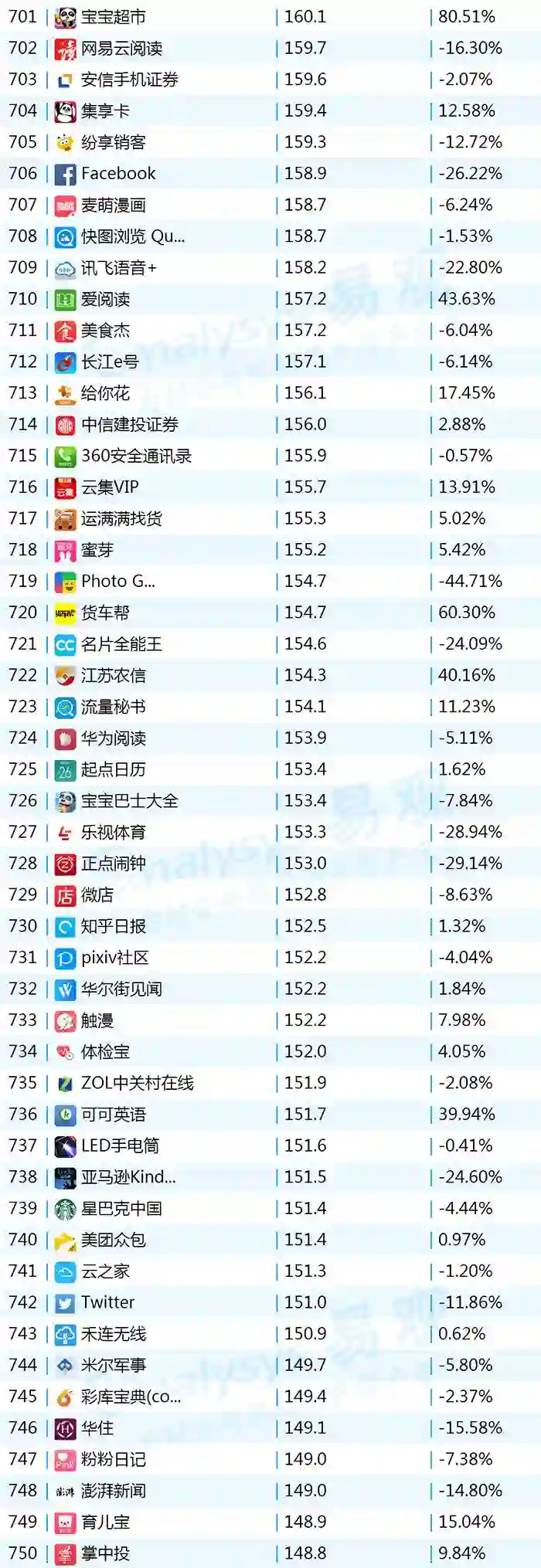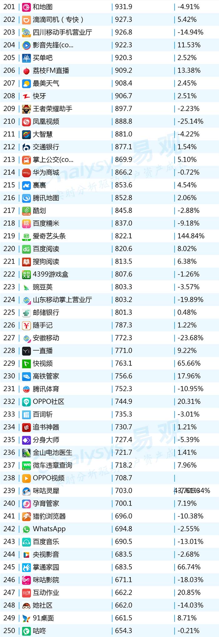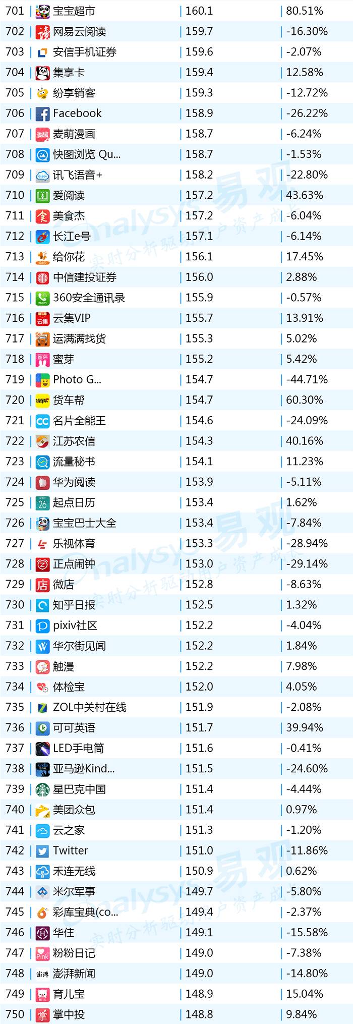 2017年9月App TOP1000 701-800