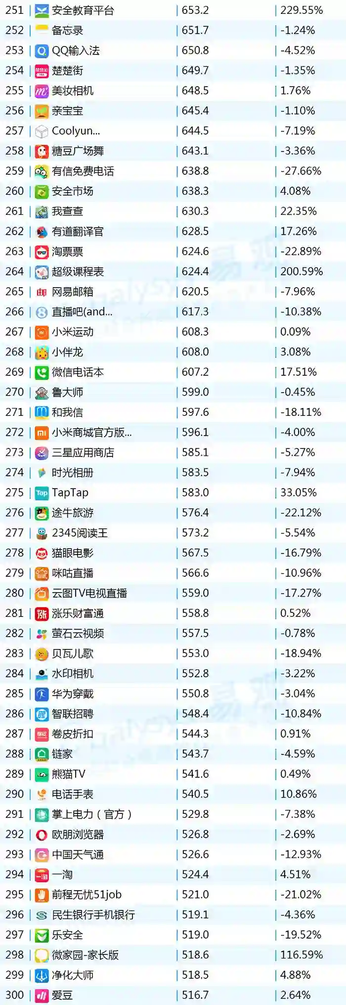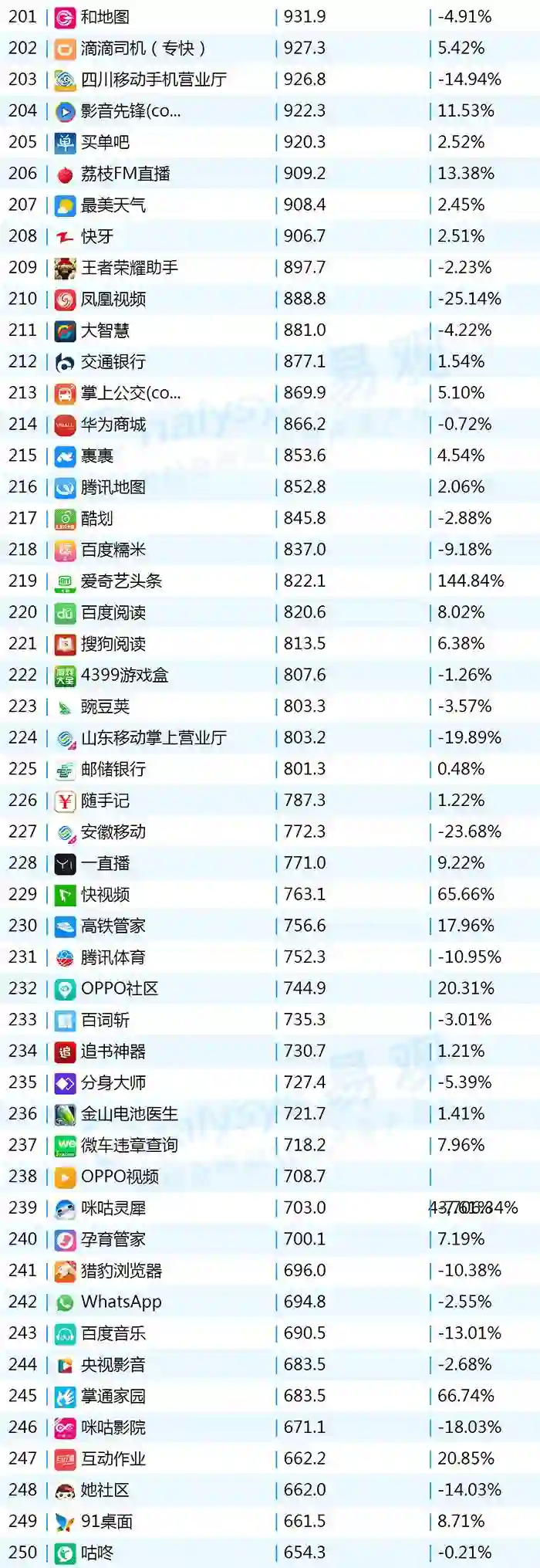 2017年9月App TOP1000 201-300