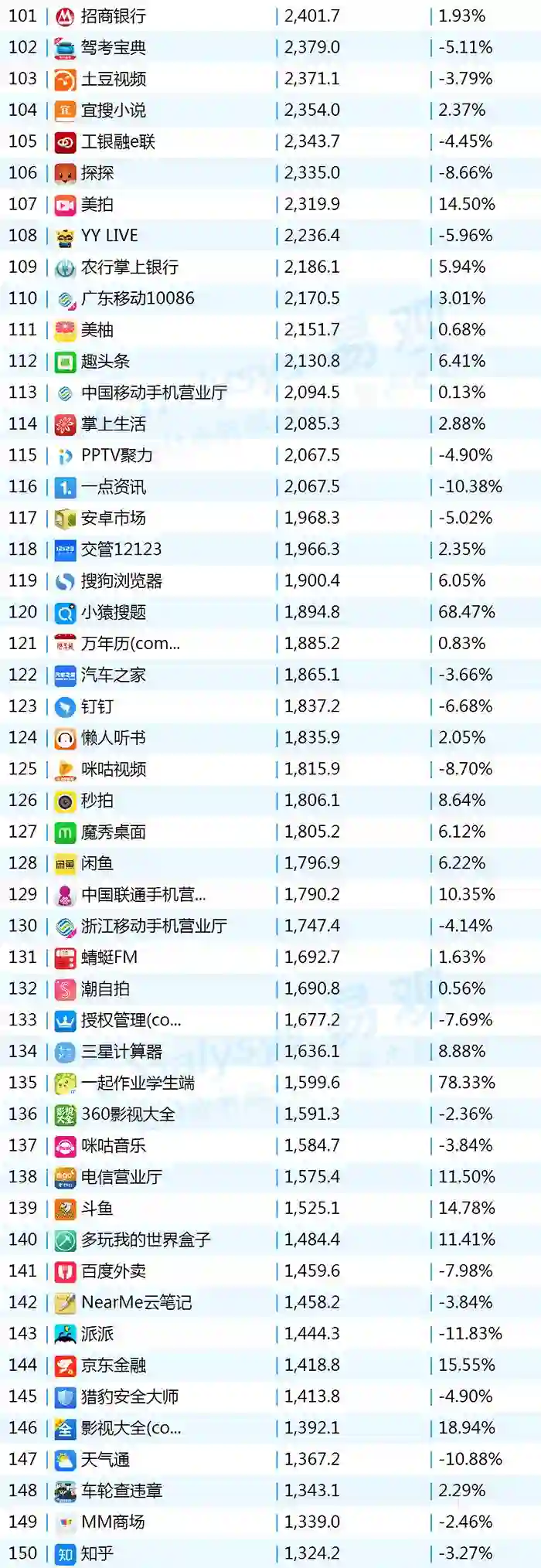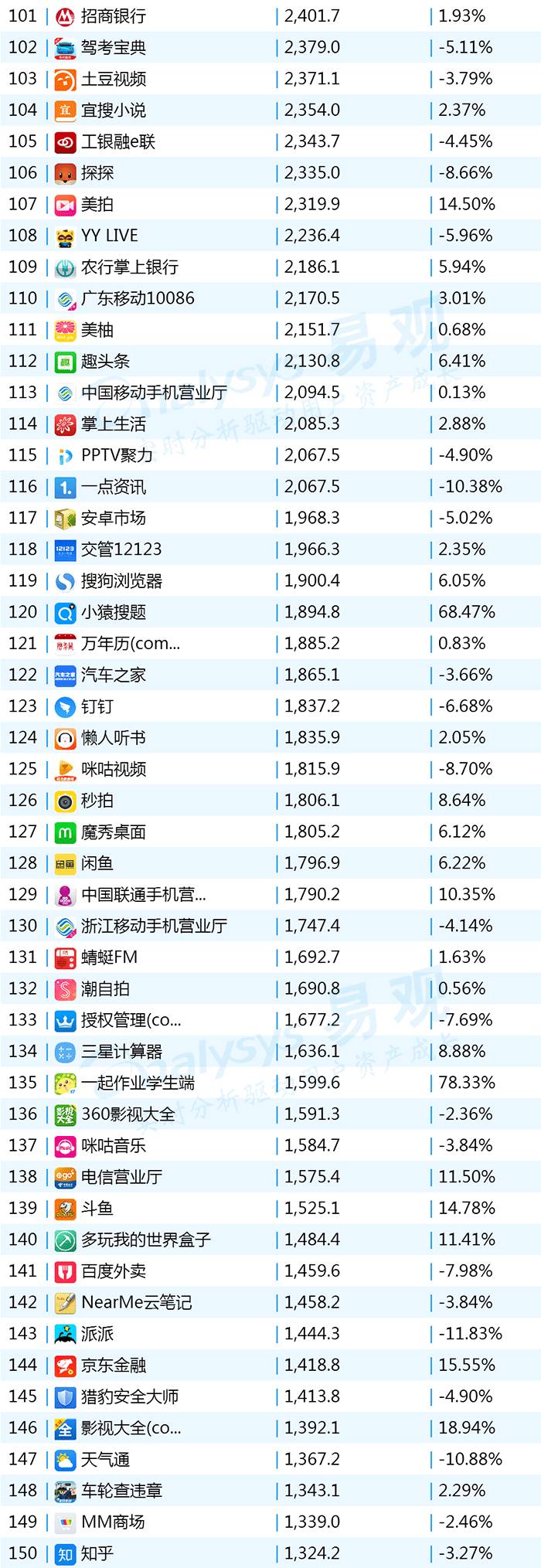 2017年9月App TOP1000 101-200