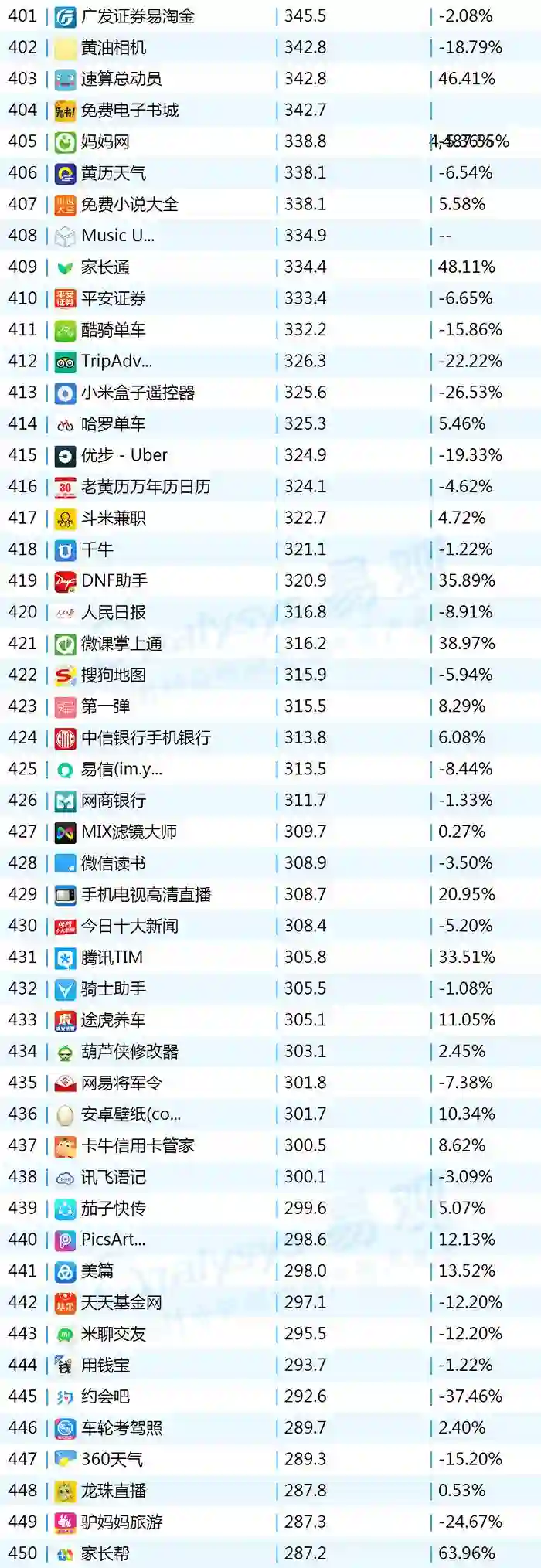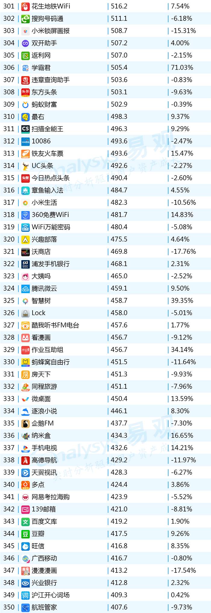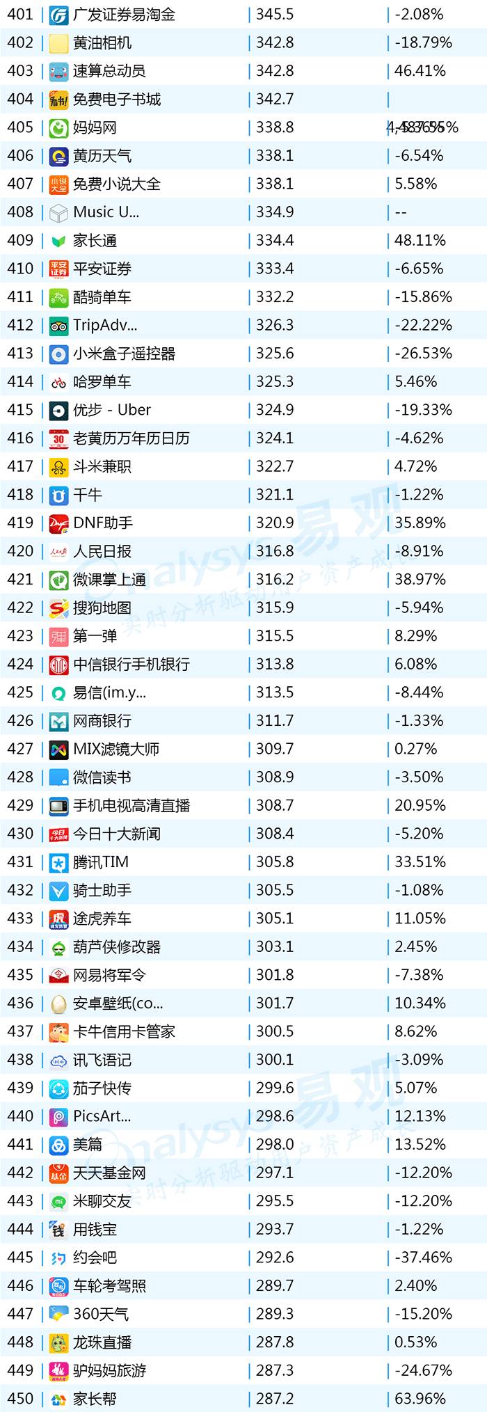 2017年9月App TOP1000 301-400