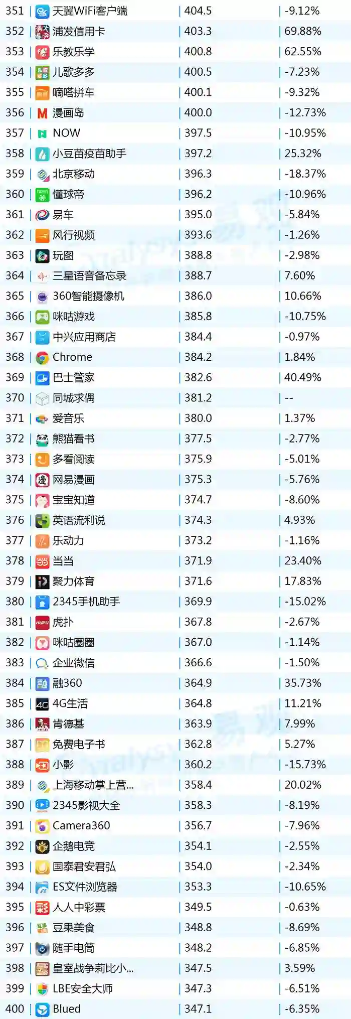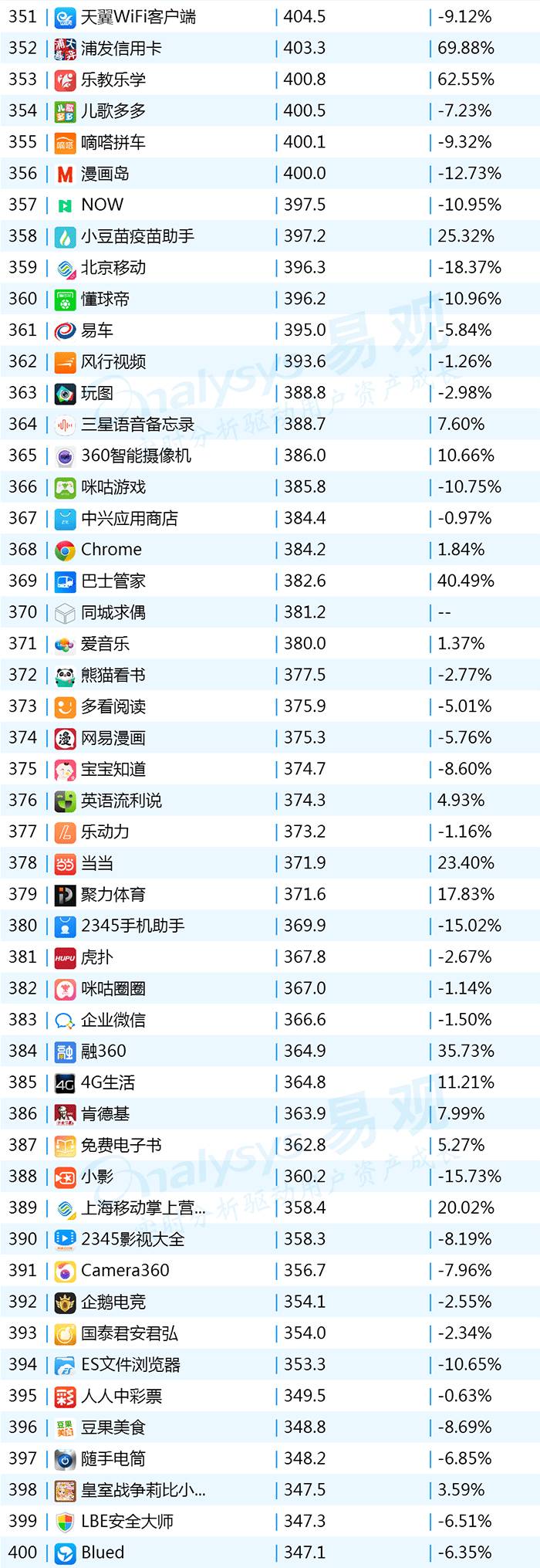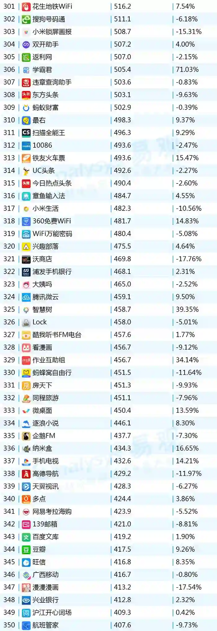 2017年9月App TOP1000 301-400