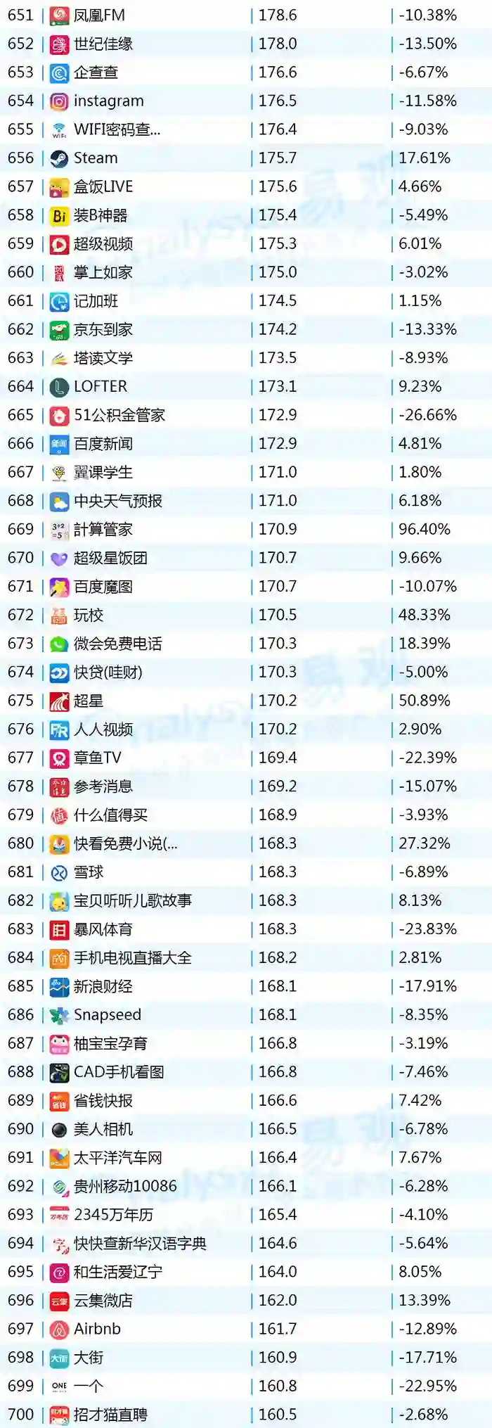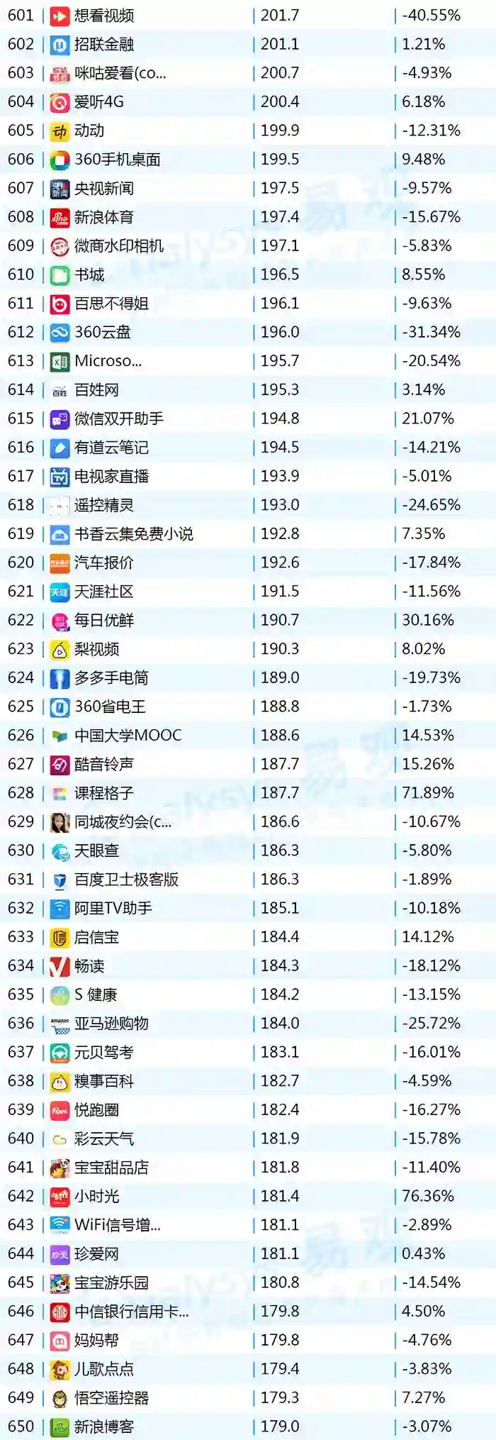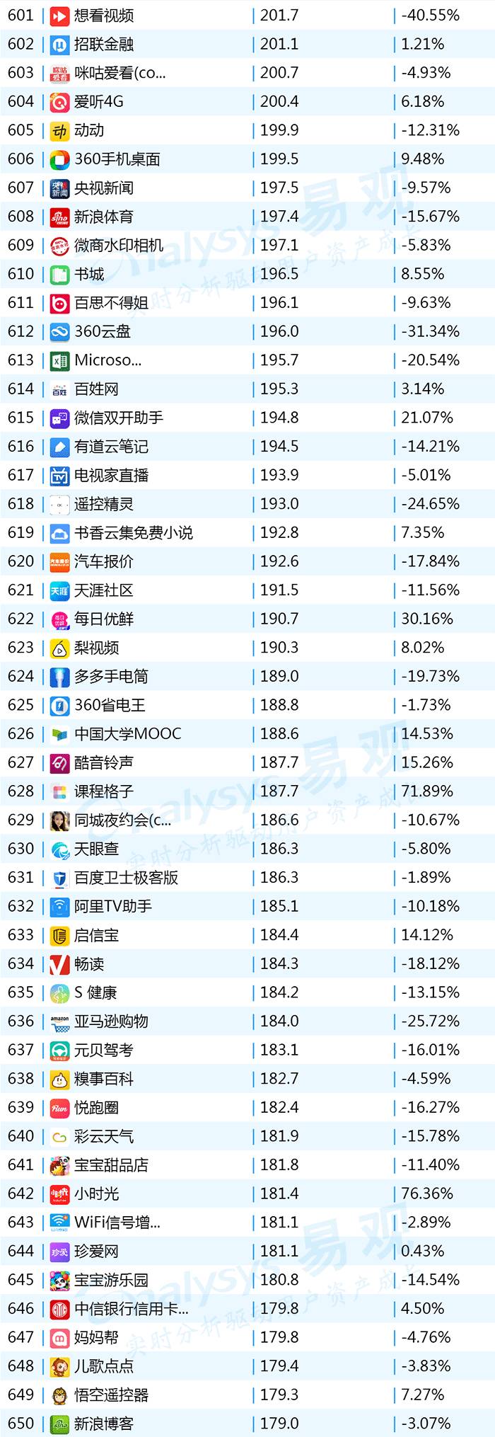 2017年9月App TOP1000 601-700