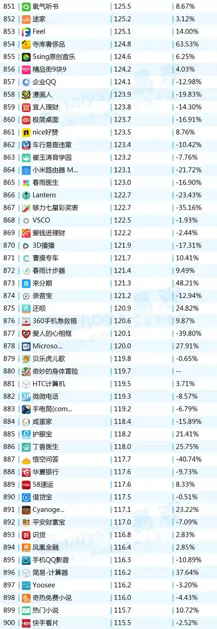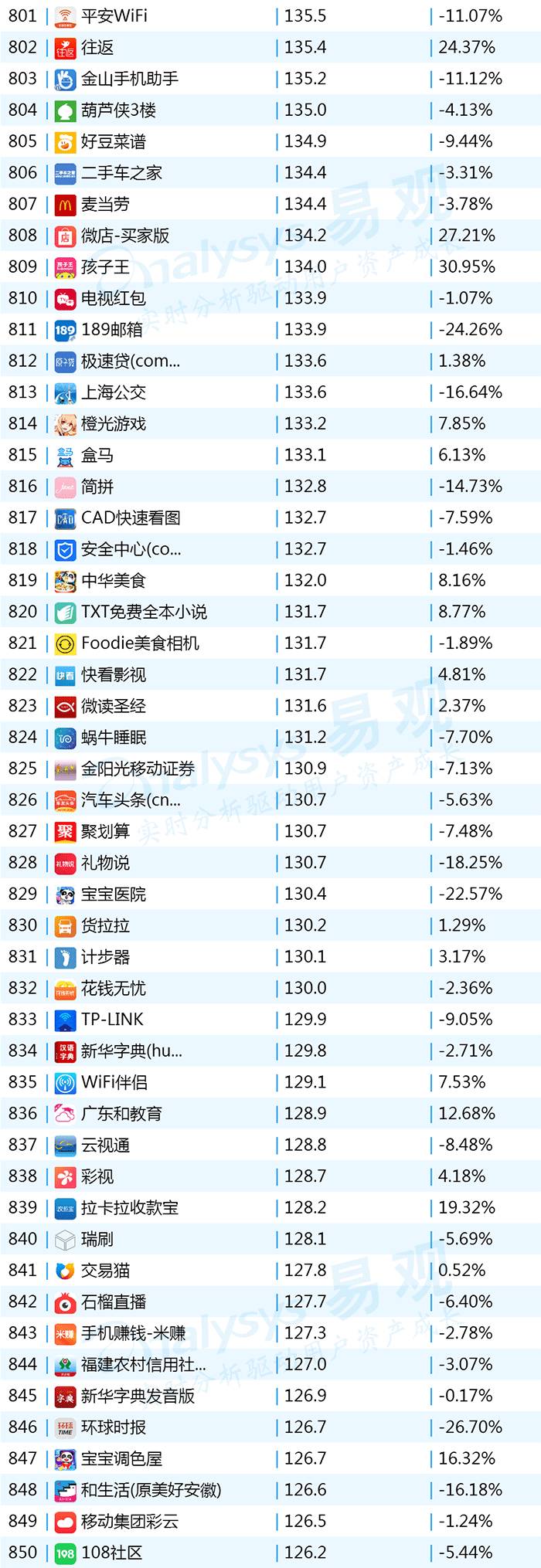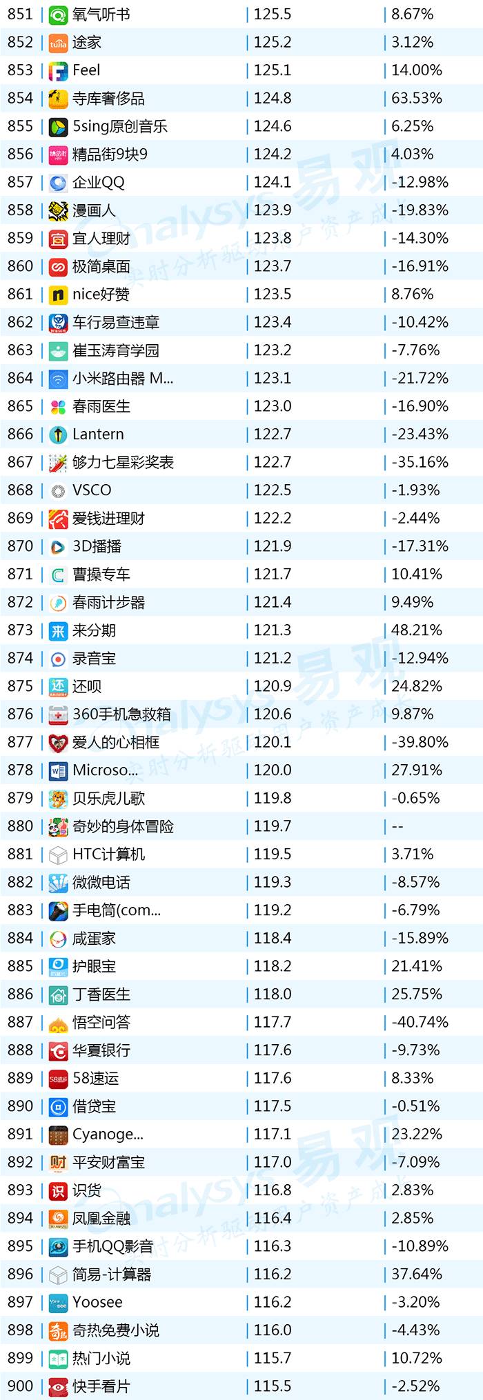 2017年9月App TOP1000 801-900