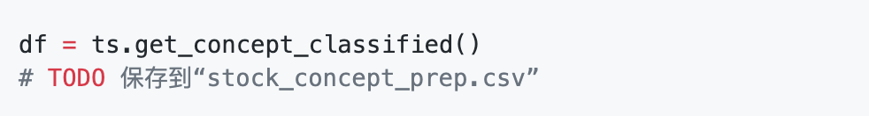 类似的,可以通过以下代码即可获得股票概念信息,并把它们存储在stock_concept_prep.csv文件里。