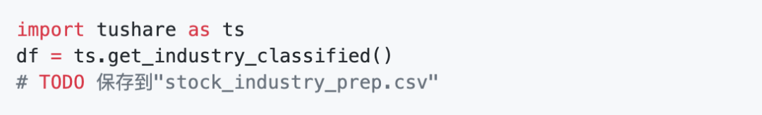 通过以下的代码获得股票行业信息,并把返回的信息直接存储在stock_industry_prep.csv文件里。