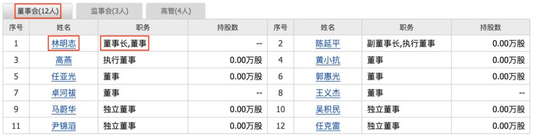 | 高管姓名 | 性别 | 年龄 | 股票代码 | 职位 |
