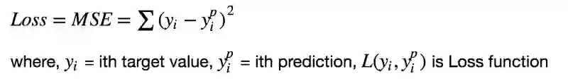 监督学习算法的目标是定义一个损失函数,然后最小化它。我们来看看,数学上梯度提升算法是怎么工作的。比如我们使用均方误差(MSE)作为损失函数: