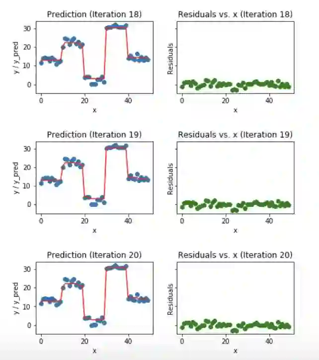 Fig 6. Visualization of gradient boosting predictions (18th to 20th iterations)