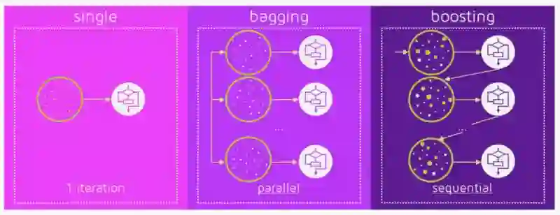 Fig 2. Bagging (independent models) & Boosting (sequential models). Reference: https://quantdare.com/what-is-the-difference-between-bagging-and-boosting/