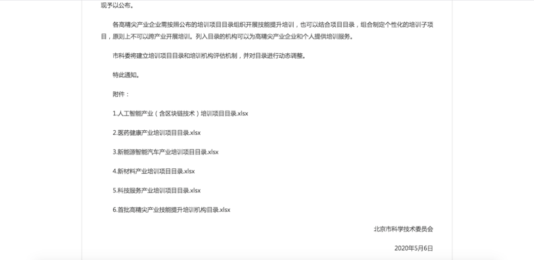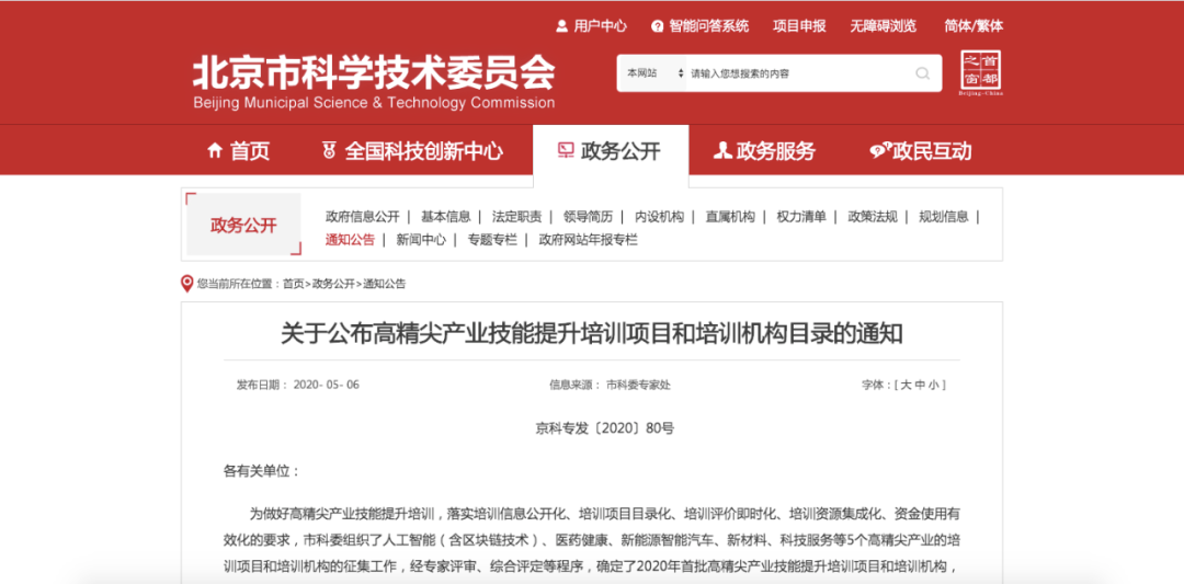 近日,北京市科学技术委员会公布了 2020 年首批高精尖产业技能提升培训项目和培训机构名单,