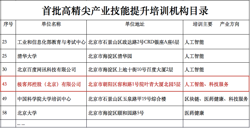 「极客邦科技」入选“首批高精尖产业技能提升培训机构目录”