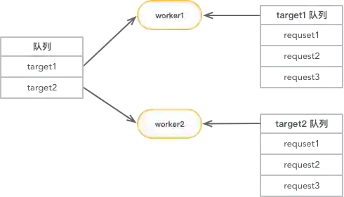 2. worker1 从 target1 队列中取出和 target1 相关的任务
