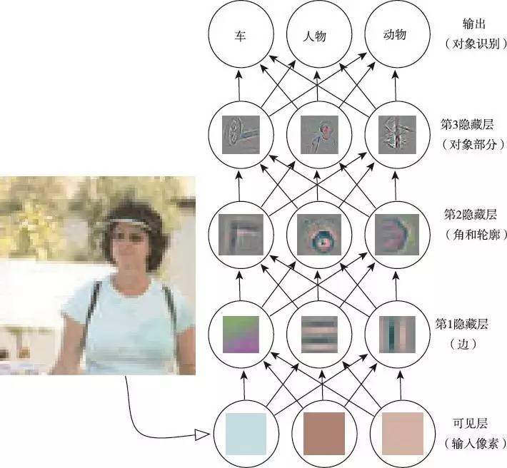 计算机难以理解原始感观输入数据的含义,如表示为像素值集合的图像。将一组像素映射到对象标识的函数非常复杂。如果直接处理,学习或评估此映射似乎是不可能的。深度学习将所需的复杂映射分解为一系列嵌套的简单映射(每个由模型的不同层描述) 来解决这一难题。输入展示在可见层(visible layer),这样命名的原因是因为它包含我们能观察到的变量。然后是一系列从图像中提取越来越多抽象特征的隐藏层(hidden layer)。
