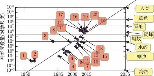 现在看来,神经元数量比一个水蛭还少的神经网络不能解决复杂的人工智能问题,这是不足为奇的。即使现在的网络,从计算系统角度来看它可能相当大,但实际上它比相对原始的脊椎动物(如青蛙) 的神经系统还要小。
