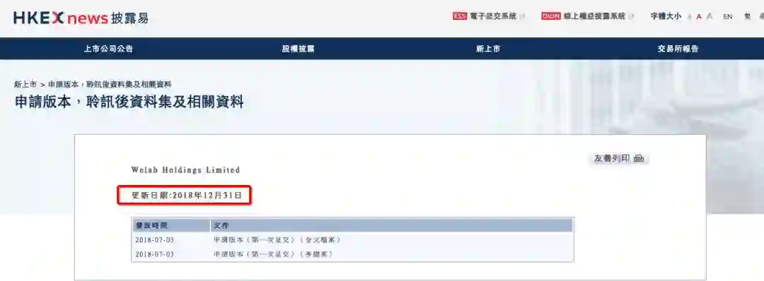 香港联交所网站显示,Welab Holdings Limited(我来贷)于2018年7月3日提交的招股书已经失效。