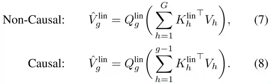 最后使用 per-dim 缩放和偏移来从 Z_g 中生成四种类型的注意力头,即 Q^quad_g、K^quad_g、Q^lin_g 和 K^lin_g。