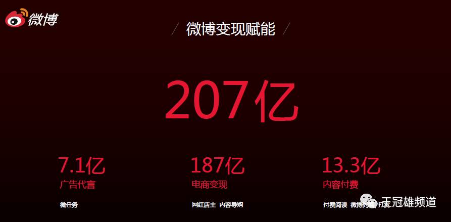 可以说,通过垂直战略、MCN战略的布局,微博不仅成为了头部用户的孵化器,而且也通过广告、内容电商、内容付费三大变现方向为用户赋能,这也正是微博变现赋能从去年117亿到今年207亿的关键要素之一。