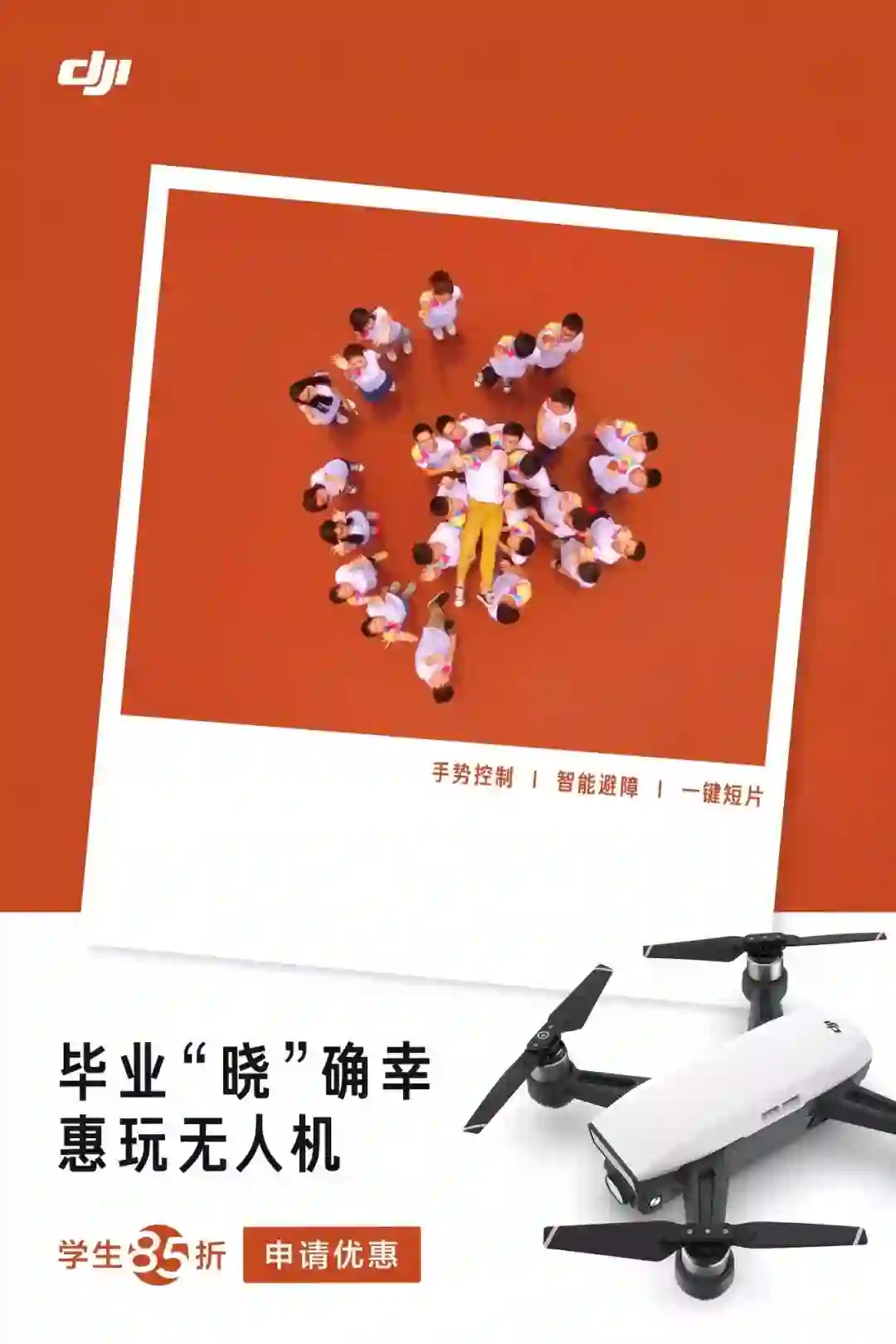 最后有一波福利送给同学们和老师们!即日起至5月31日,学生、教育工作者或需购买大疆产品用于教育用途的学术机构成功申请教育折扣后,即可享受“晓”Spark系列产品85折优惠。用一台无人机,让你的校园生活或毕业时光精彩到飞起来,点击“阅读原文”,马上申请属于你的教育折扣。