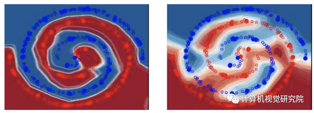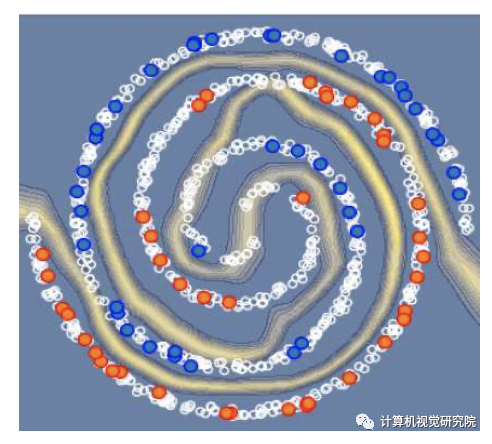 我们从上图中看到,用BN进行监督训练,很好地学习了标记样本的分布,从而学习了准确的决策边界。然而,这些决策边界并不反映真实的数据分布。相反,使用UBN,网络学习将其决策边界与data manifold对齐,并通过使用未标记样本的批处理统计来学习,在标记样本之间进行插值。