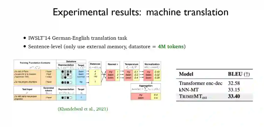 (kNN-LM),该方法与连续缓存算法类似,二者之间最大的不同在于kNN-LM为所有的训练样例构建了一个数据存储区,在测试阶段将对数据存储区的数据进行k近邻搜索,从而选择最佳的top-k数据。