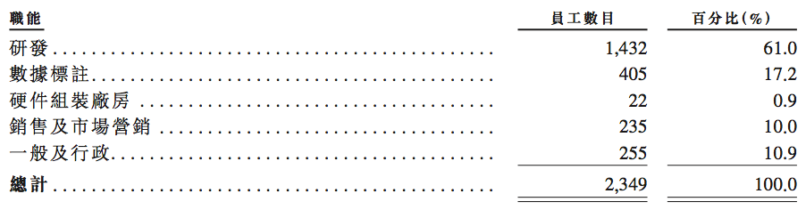 招股书披露,目前旷视员工总数 2349 人:研发 1432 人,占比 61%。