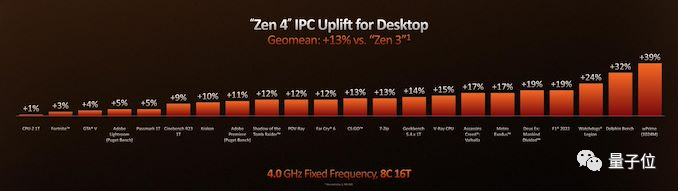 本次一同公布的,还有Zen4在固定4.0GHz频率、8核16线程下的IPC性能。