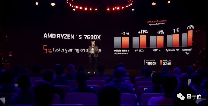 AMD声称,在游戏中,旗舰Ryzen 9 7950X整体速度比i9-12900K快11%,即使是低端Ryzen 5 7600X,整体平均也快5%。