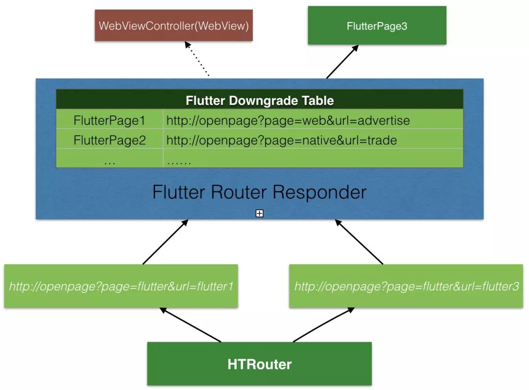 路由管理器响应 Flutter 路由时,会首先判断需要打开的 Flutter 页面是否需要降级,若需要,则会执行配置表中的路由操作,降级到网页;反之则正常跳转到 Flutter 页面。