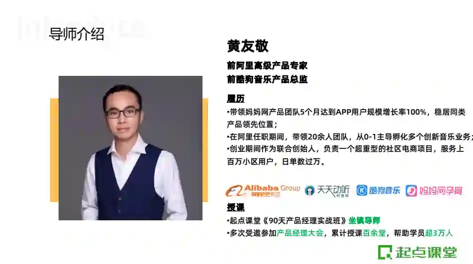 公开课内容精选自起点课堂《90天产品经理实战班》,直播授课导师:前阿里高级产品专家@黄友敬。