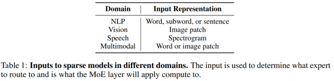 架构和算法大致相同,下表 1 显示了不同域的稀疏层输入表征。