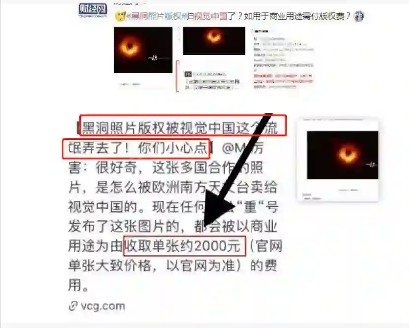 这里头压根没「视觉中国」什么事,它只是欺世盗名,职业习惯地蹭热点挖了个坑,等待事后去找一批不太懂行的对象收点“版权费”——总会有人上套的。至于版权瑕疵,欧洲南方天文台是否真有这个授权,不会有人去查的,没没有途径去查。