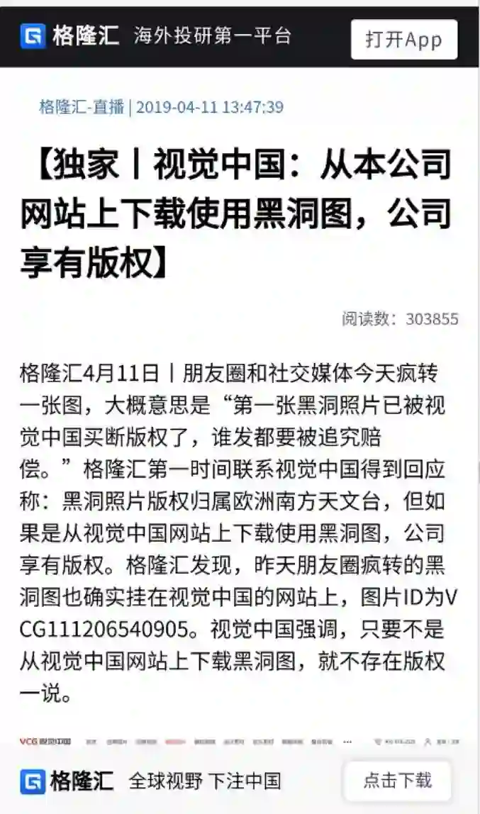 这意思是,全球一堆国家携手起来,代表人类整的这么一个大项目,花了几年时间拍出来的照片,最后版权归属一家中国叫不出名的小公司?所有朋友圈发的该图片,事后都面临着被它追诉侵权,以及大额索赔?