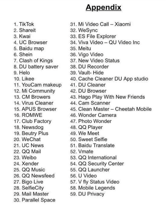 今年6月及7月,印度政府“出于国家安全原因”先后发布59款及47款封禁应用名单,其中包括UC浏览器、TikTok、微信、微博等。近日,印度再将15款中国APP列入黑名单,包括美拍、小米浏览器等。