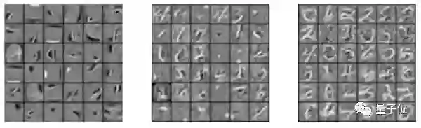 将RBF堆叠的原因就是将底层RBF学到的特征逐渐传递的上层的RBF上,逐渐抽取复杂的特征。比如下图从左到右就可以是低层RBF学到的特征到高层RBF学到的复杂特征。在得到这些良好的特征后就可以用第二部分的传统神经网络进行学习。