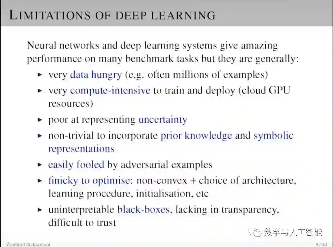 7. 深度学习是难以解释的黑箱,缺乏透明度,难以令人信任,使得深度学习难以部署到一些非常重要的任务上。