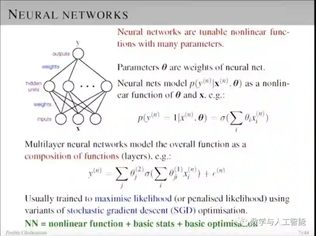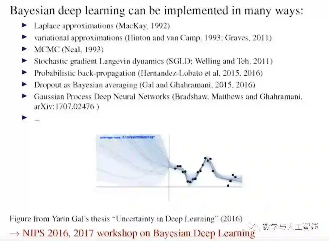如下 Zoubin 表示贝叶斯深度学习可以以多种方式实现,它们的关键计算问题是在参数上做贝叶斯推断,并在给定神经网络数据的情况下构建所有参数的概率分布。