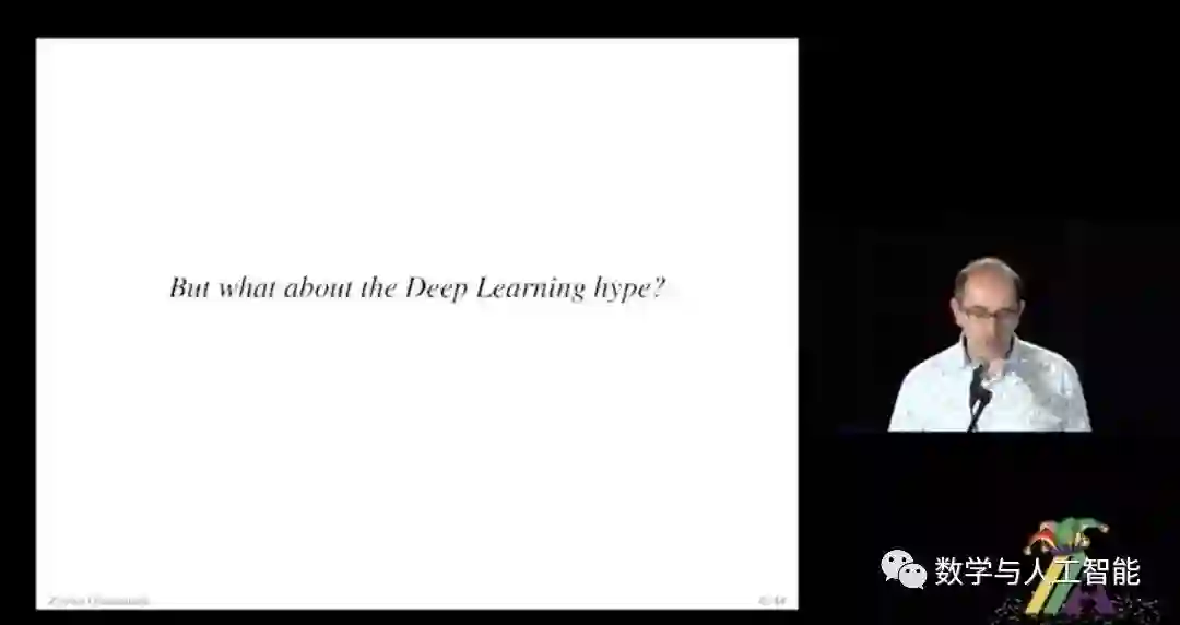 在这一个视频中,Zoubin 并不会介绍全部领域,他只会重点讨论三个方向,即贝叶斯深度学习、概率编程和自动化统计学。首先对于贝叶斯深度学习,他表示前面很多地方都将深度学习与贝叶斯统计立在对立面,但其实它们并不是对立的。深度学习旨在构建不同类型的模型,而贝叶斯推断旨在关注学习的方法,它们是可以相互结合的。