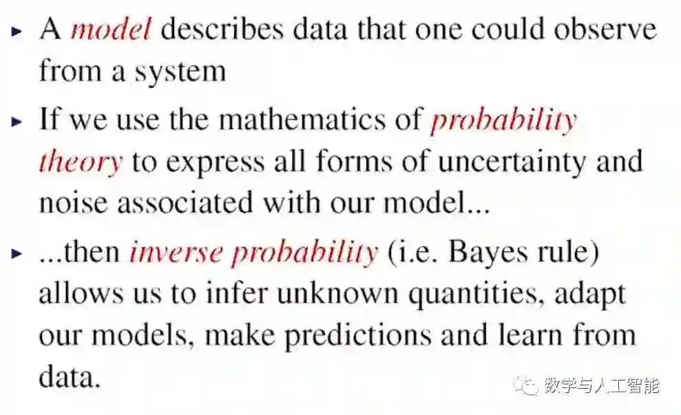 如果当我们对世界的某种数据建模时,我们需要预测那些没观察到的数据以及它们之间的不确定性,因此我们可以使用数学中概率论描述这种不确定性并完成「模型」的构建。