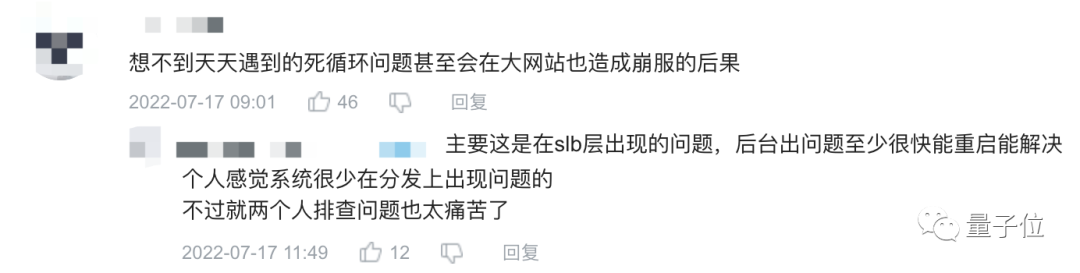 不过,有人指出,死循环不罕见,罕见的是在SLB层、在分发过程出问题,它还不像在后台出问题很快能重启解决。