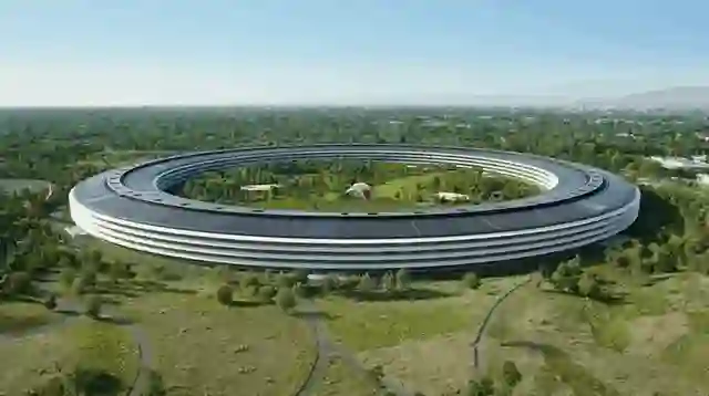 这个看似像一座飞船的大楼位于加利福尼亚库比蒂诺市,是由乔布斯生前设计,占地面积280万平方英尺(约合26万平方米)。