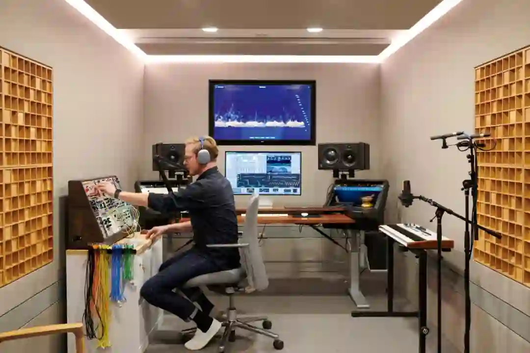 音频设计师在设计工作室的声音实验室中创建自定义声音