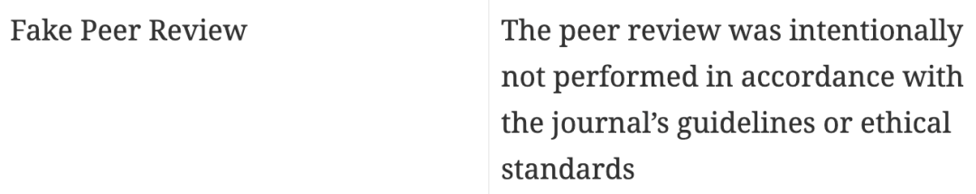 著名科研打假网站 RetractionWatch 中列出的撤稿原因中,伪造同行评议便榜上有名,指的是「故意不按照期刊指南或道德标准进行同行评审的行为」。