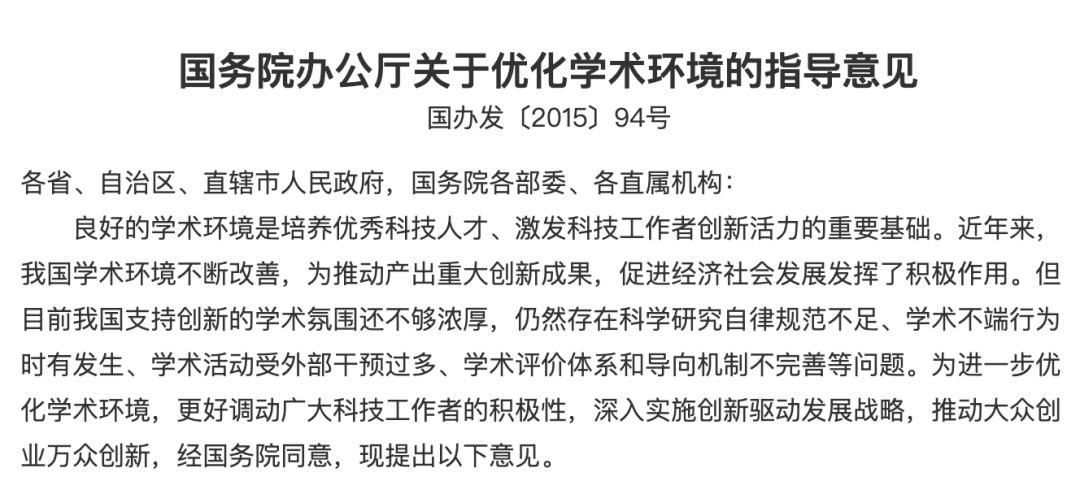 2016 年初,国务院下发了《关于优化学术环境的指导意见》,明文叫停「利用中介机构或其他第三方代写或变相代写论文,或通过金钱交易在国内外刊物上发表论文」。