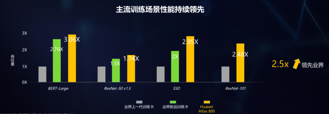 在训练端华为也有高密度「算力狂魔」,实测表明,Atlas 800在多个模型的训练中都优于业界新品训练服务器,平均性能领先业界2.5倍。