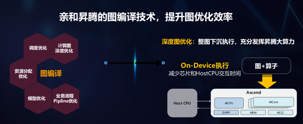 神经网络可看作一张张的图,过去大部分图在HostCPU执行,如今昇腾的图编译器,实现了整图下沉,图和算子均可在Device侧执行,减少了芯片与Host CPU的交互时间,从而更充分地发挥昇腾芯片的算力。