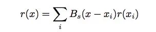 那么我们就认为r(x)是“可位移的”(shiftable)。因为参照之前图像位移的说法,既然采样后信号具有平移不变性,那原信号载体就是可以移动的。其中xi是二次采样因子s采样网格上的信号,Bs(x)是从采样中重建的r(x)基函数。