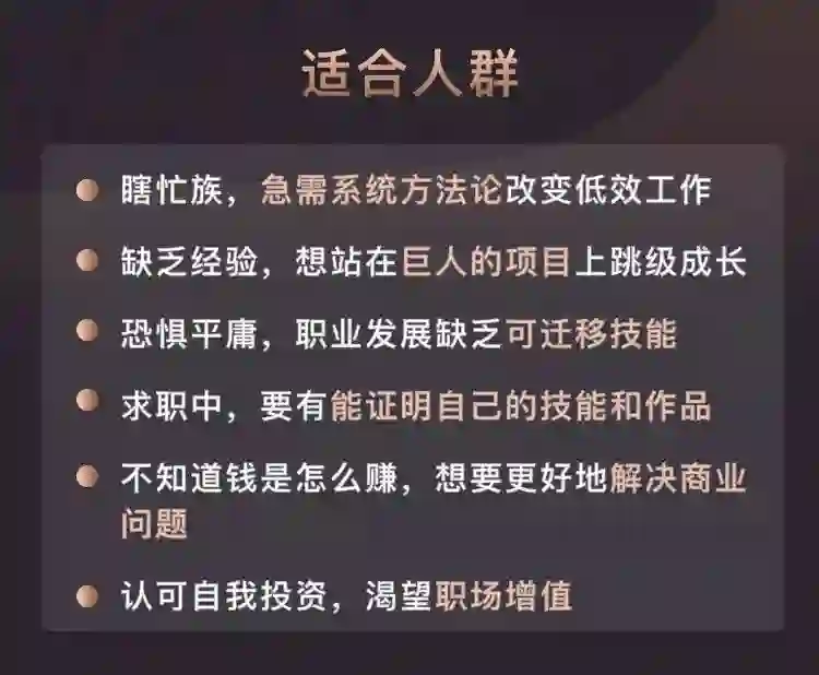 全程督学+激励——课程购买后可添加班主任微信,他全程带班督学,分享行业干货,协助大家组成学习小组,完成课后练习的提交,打败拖延和偷懒。按要求提交作业的同学,可以获得“毕业证书”;导师点评为优秀,还可获得“优秀学员证书”。