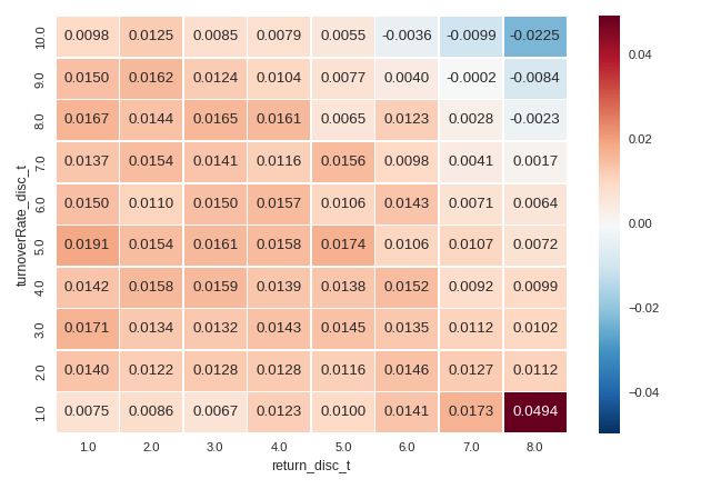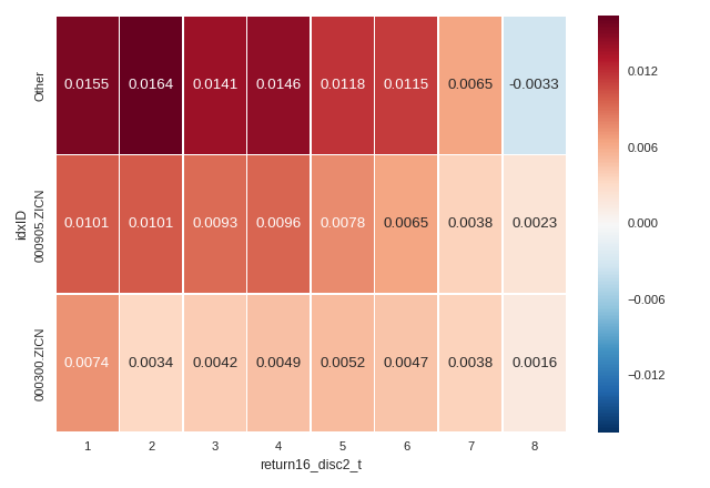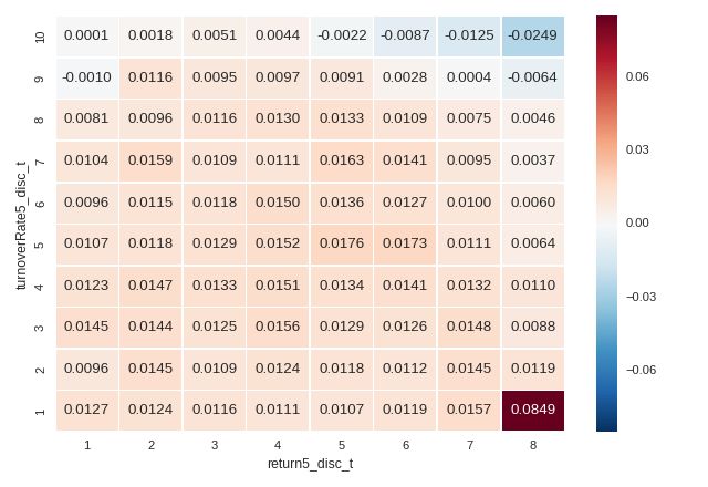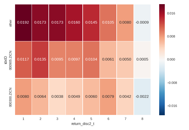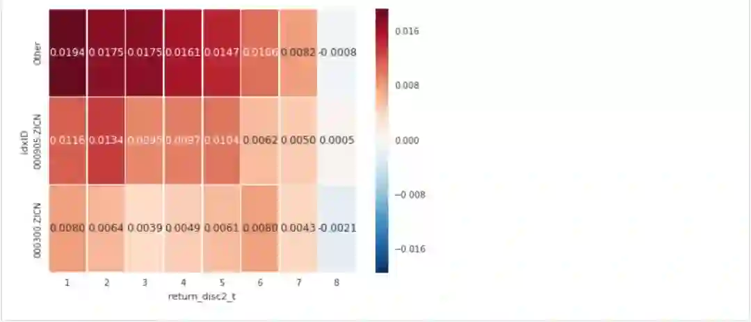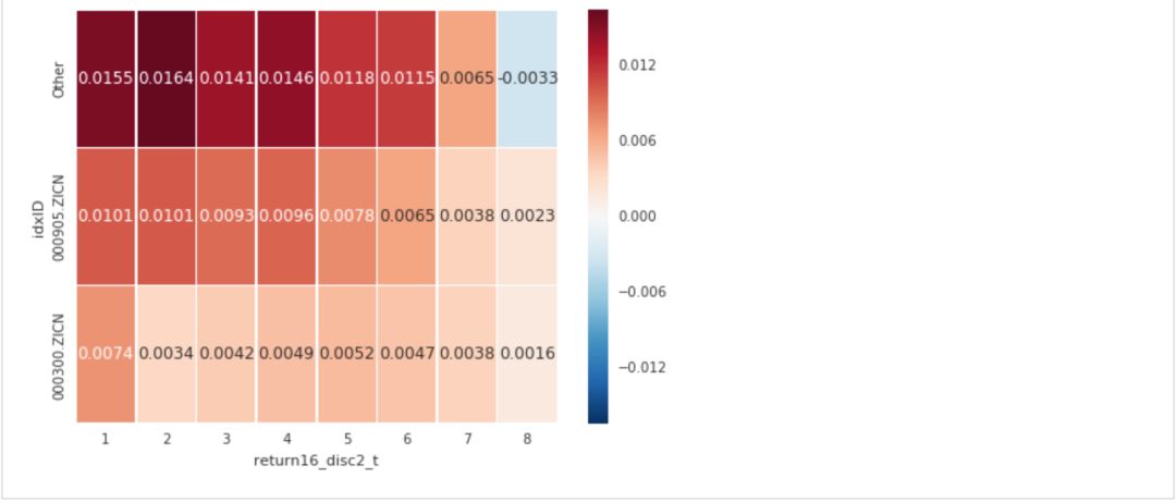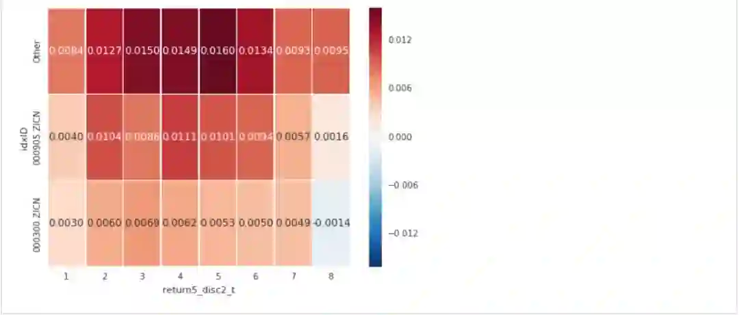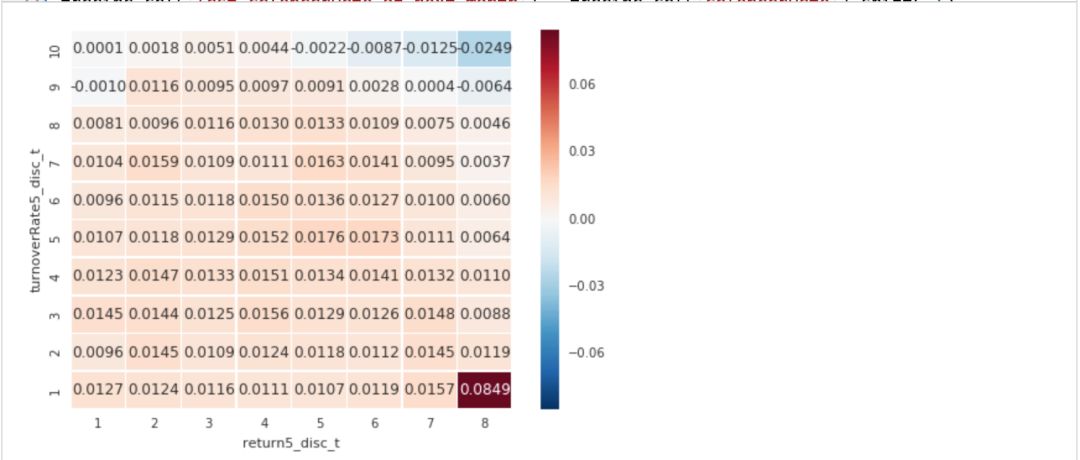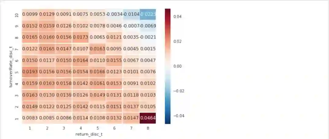 此热力图的结果和流动性/反转因子的单因子分组表现一致。相当于将一个二维随机变量的联合概率分布转换成边缘分布。