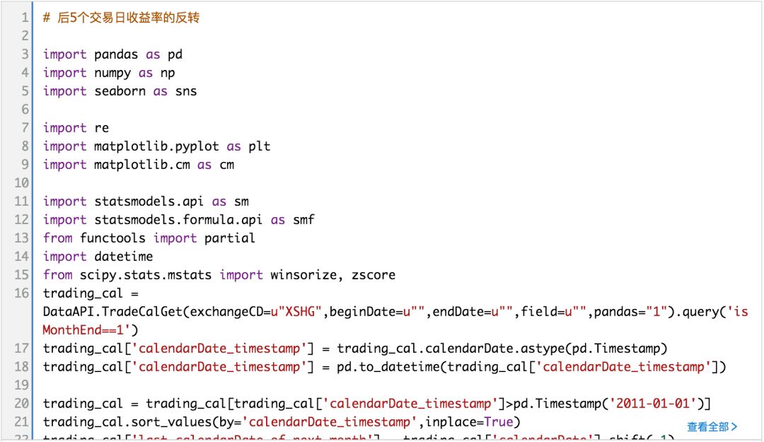 原文的因子是最后3个交易日的收益率,且建议使用最后一个交易日的收益率作为因子。而本文因为便利性的原因用的是最后5个交易日的收益率。