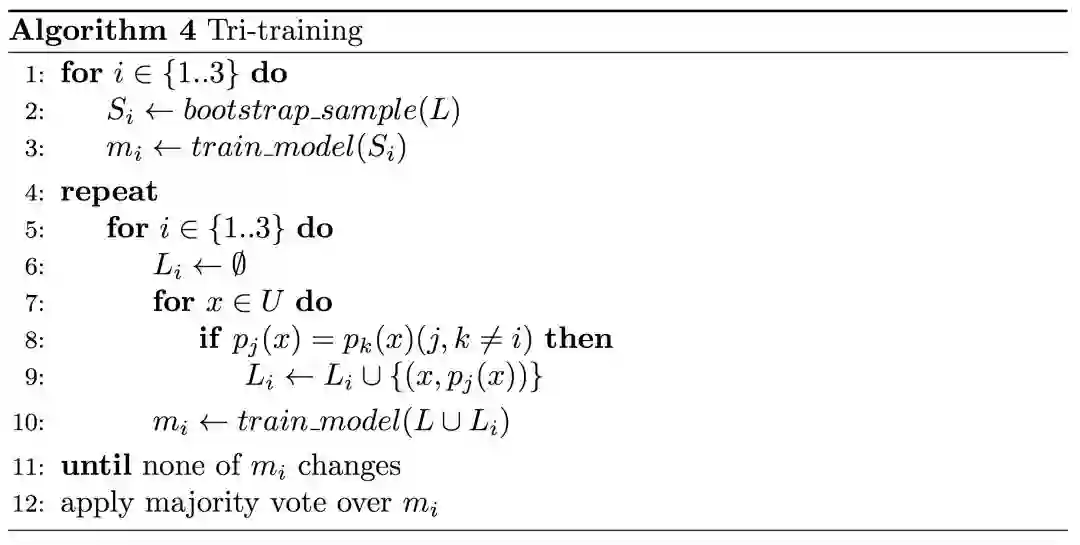 [14] Zhou, Z.-H., & Li, M. (2005). Tri-Training: Exploiting Unlabled Data Using Three Classifiers. IEEE Trans.Data Eng., 17(11), 1529–1541.